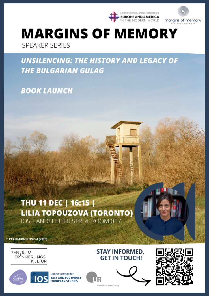 Lilia Topouzova, Mitglied des Forschungsnetzwerks „Margins of Memory“ des Leibniz ScienceCampus Europe and America in the Modern World, stellt im Rahmen der „Margins of Memory Speaker Series” ihr neues Buch „Unsilencing: The History & Legacy of the Bulgarian Gulag “ vor. Dabei wird sie im Gespräch sein mit Dr. Volha Bartash, Prof. Dr. Roumen Daskalov, Dr. Tatiana Klepikova und Prof. Dr. Jörg Skriebeleit.