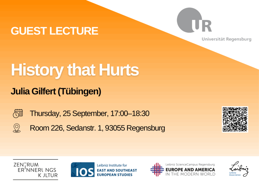 Im Namen der Organisator*innen Natali Stegmann (UR), Ger Duijzings (UR) und Heike Karge (Graz) laden wir Sie herzlich zum Gastvortrag von Julia Gilfert (Tübingen) mit dem Titel History that Hurts ein.