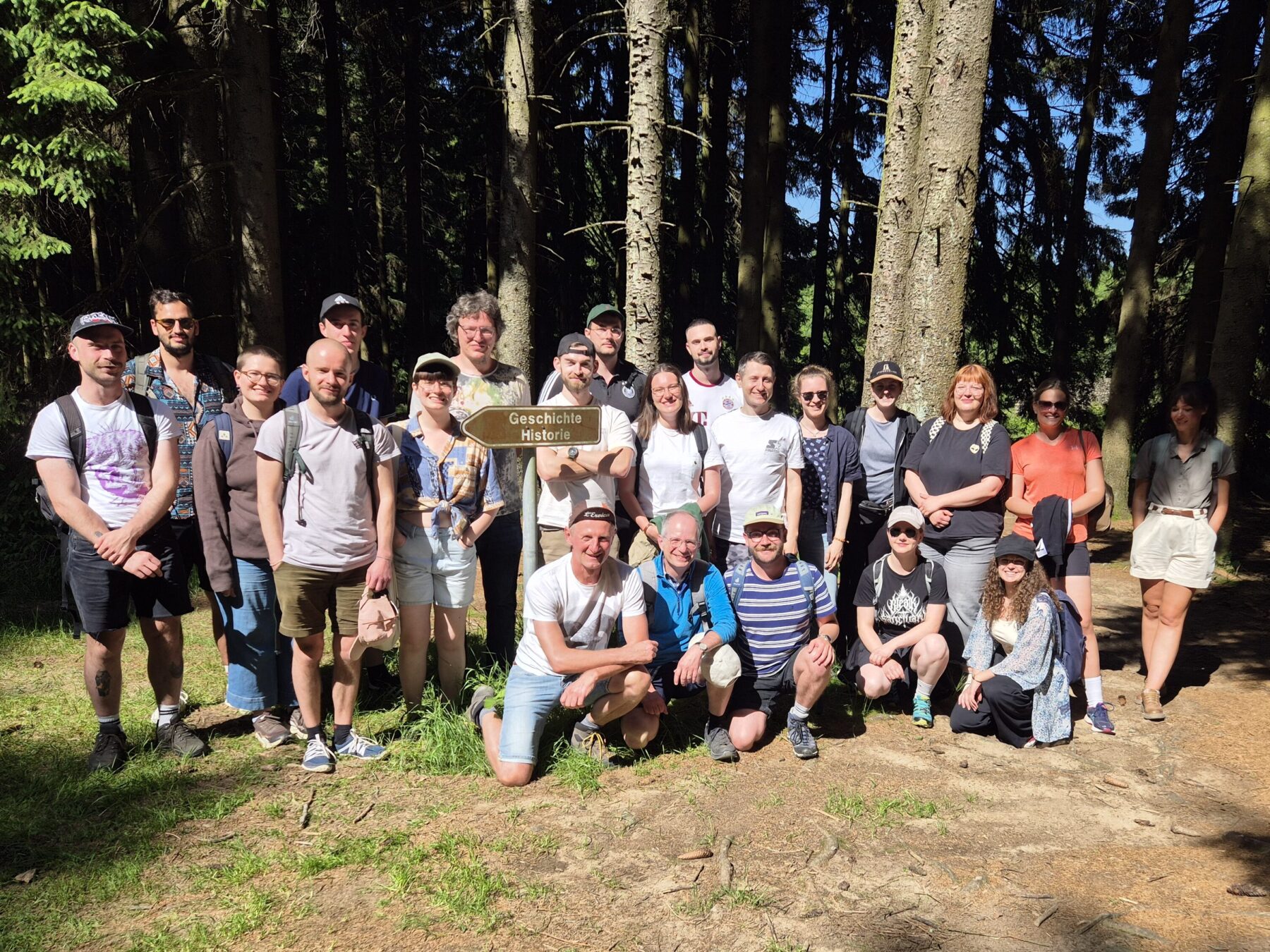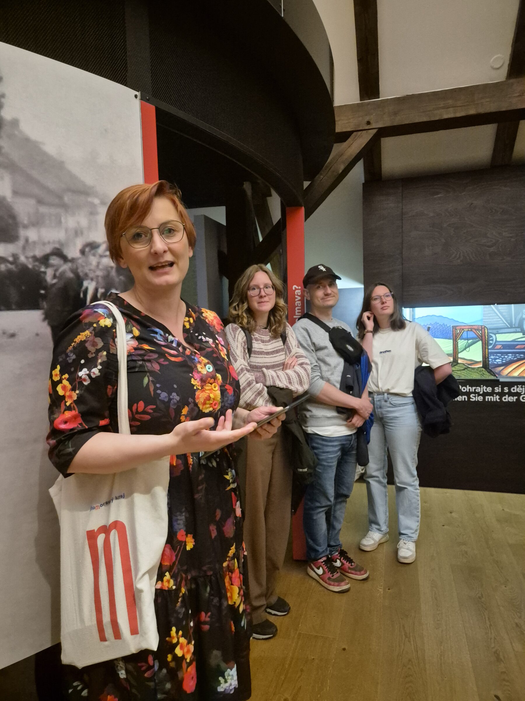 Im Mai und Juni begab sich das Seminar auf zwei Exkursionen – eine zweitägige rund um Újezd, Domažlice, Lučina und Furth im Wald und eine eintägige nach Schönsee, Bügellohe und Pleš. An verschiedenen Stationen gingen die Studierenden der Frage nach, auf welche Weise die bayerisch-tschechische Grenze vor Ort sowohl historisch als auch gegenwärtig verhandelt, ausgestellt, (re-)präsentiert und wahrgenommen wird. Sie beschäftigen sich mit Vermittlungsmedien und -institutionen – von Kulturzentren und Ausstellungen über Infotafeln, Denkmäler und Skulpturen bis hin zum Festspiel oder einer szenischen Lesung. Dabei kamen sie auch mit vielfältigen lokalen Akteur*innen ins Gespräch. Die Seminargruppe kam durch die Erkundungen vor Ort mit einer große Bandbreite an grenzbezogenen Themen in Berührung: mit „verschwundenen“ Dörfern; mit den Erwartungen, die mit dem Fall des „Eisernen Vorhangs“ verknüpft wurden; mit der nationalen Relevanz der Chodsko-Region in Tschechien; mit dem Verhältnis von Natur, Grenze und Tourismus; mit musikalischen Traditionen in Bayern und Böhmen usw.